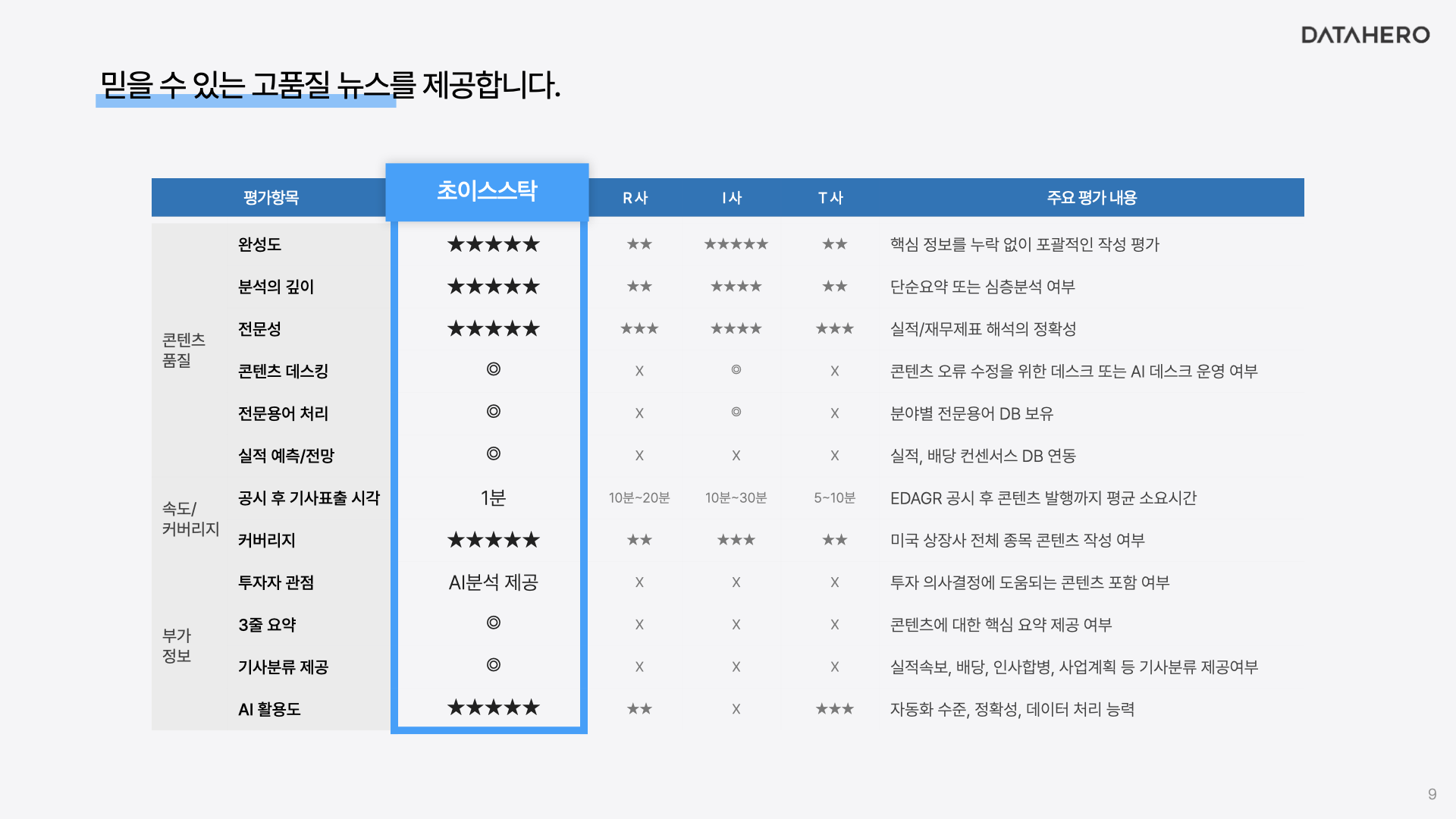 이를 통해 투자 핵심 포인트를 자동 추출하고, 관심종목의 맞춤 속보 알림을 신속하게 제공하여 정확하고 신뢰할 수 있는 투자 정보를 전달합니다.