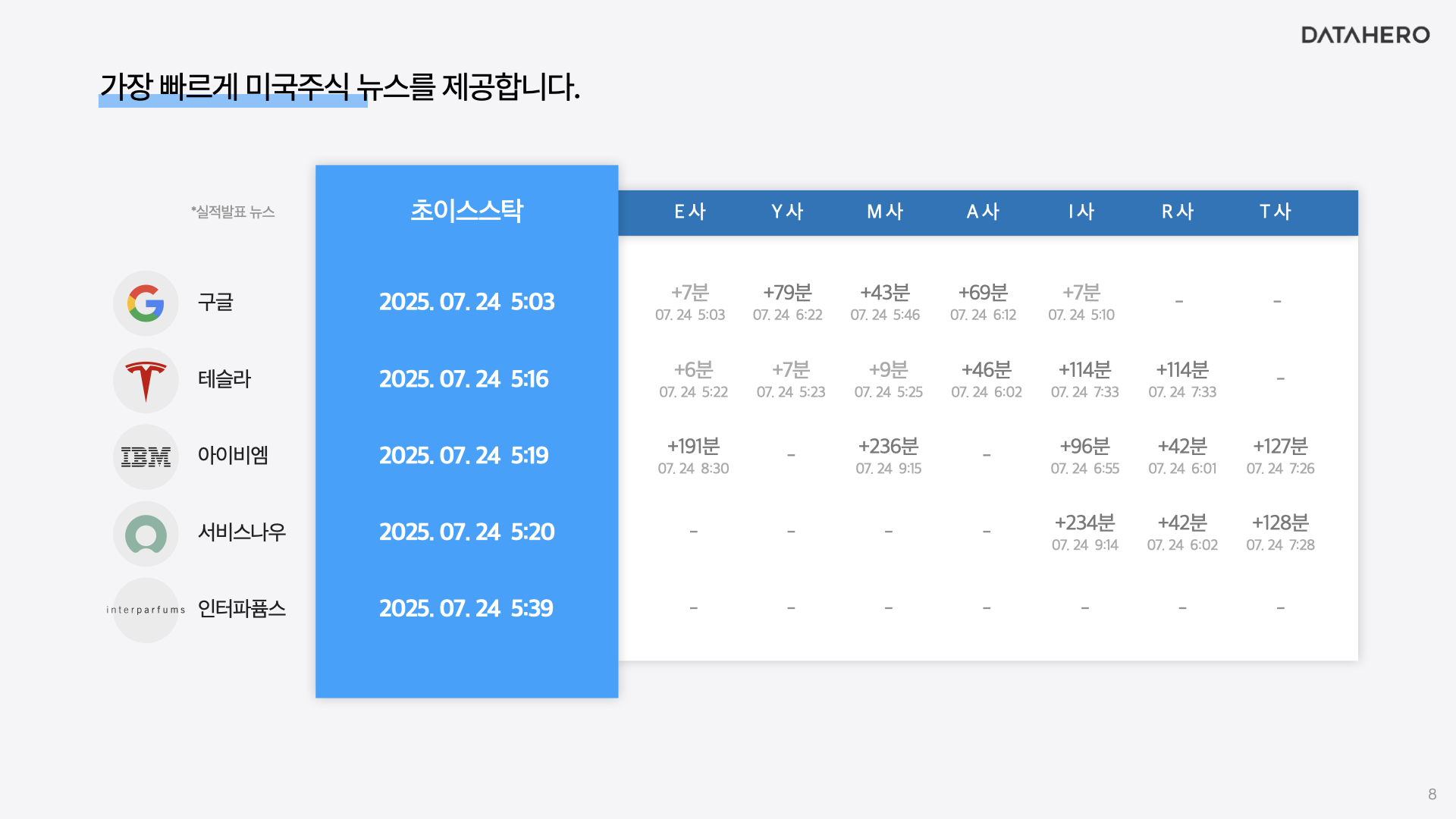 이러한 투자자의 니즈를 위해 데이터히어로가 ‘전종목 매매신호’에 이어, AI 투자분석 시스템 기반의 실시간 투자 속보 서비스 ‘애드가플래시’를 개발했습니다.